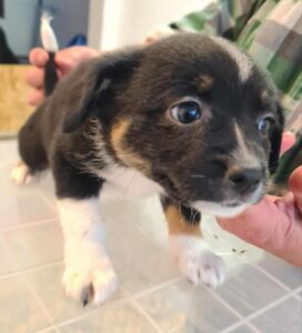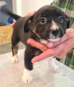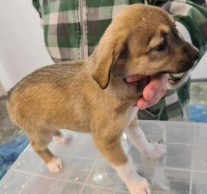 Ze is geschat op 3 a 4 jaar en is met haar 35 cm schofthoogte een kleine medium. Ze weegt momenteel 8 kg